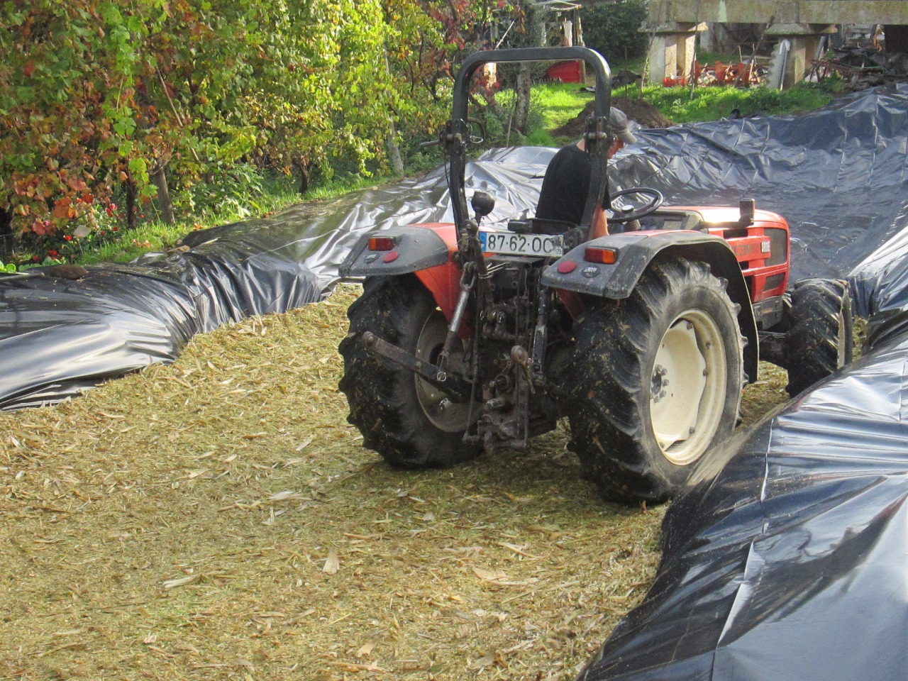 O silo foi previamente preparado com a abertura de uma depressão no terreno, um simples buraco de forma alongada, onde foi colocado um revestimento com um plástico negro de forma a proteger a silagem, construindo assim um silo do tipo trincheira, simples e barato.