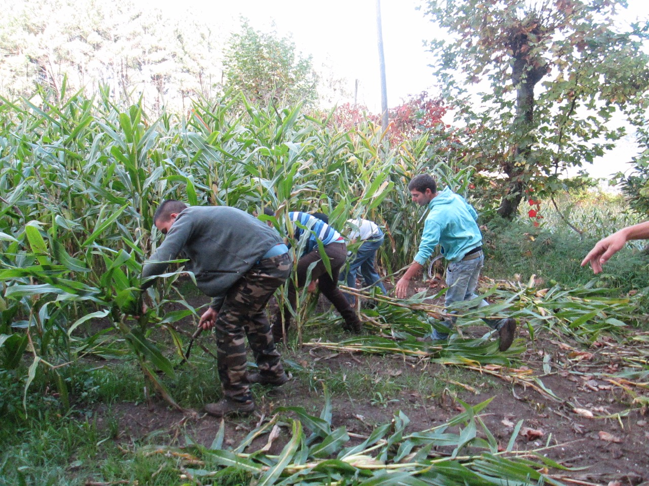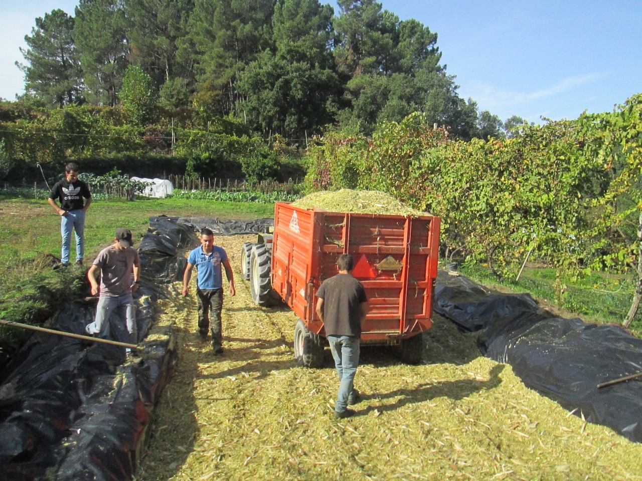 O trabalho dos alunos passou assim, para além do corte das cabeceiras para a entrada das máquinas, pelo apoio no silo ao espalhar e calcar a silagem, pela colaboração na entrada do milho cortado manualmente na colhedora e pelo calcar dos reboques durante o seu enchimento, ainda no campo.